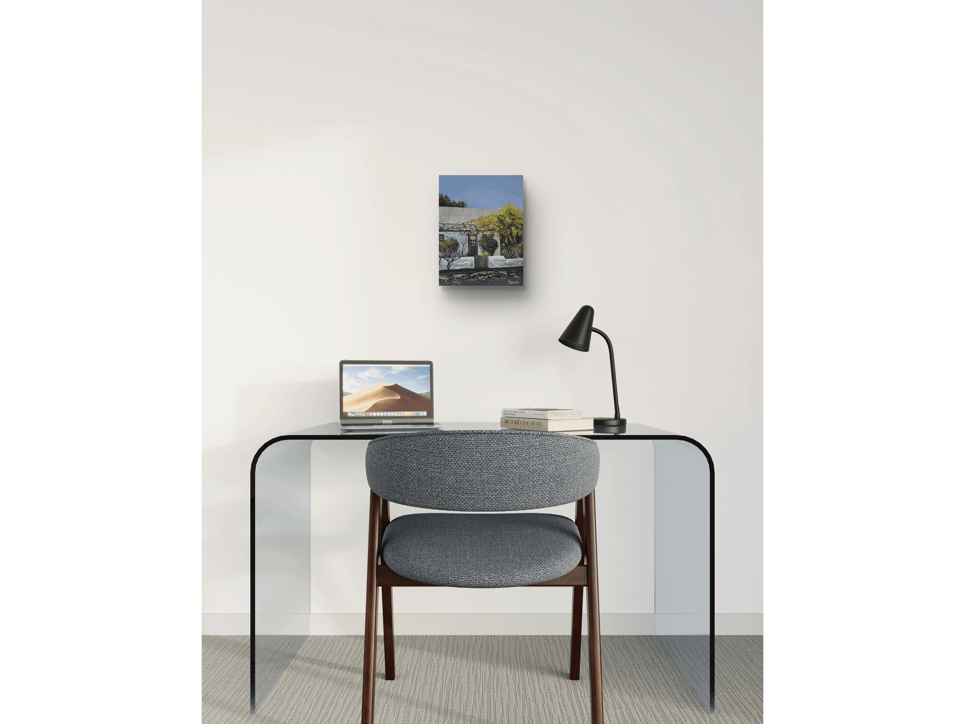 The artist beautifully captures the play of light on various textures—from the rough-cast plaster of the walls to the soft, feathery foliage of the surrounding trees. A clear, pale blue sky provides a serene backdrop, emphasising the warmth and stillness of a typical Robertson afternoon. This exceptional Mike Forrester oil painting is a premier example of contemporary architectural landscape art, perfect for collectors who appreciate nostalgia, regional character, and the simple beauty found in heritage homes.