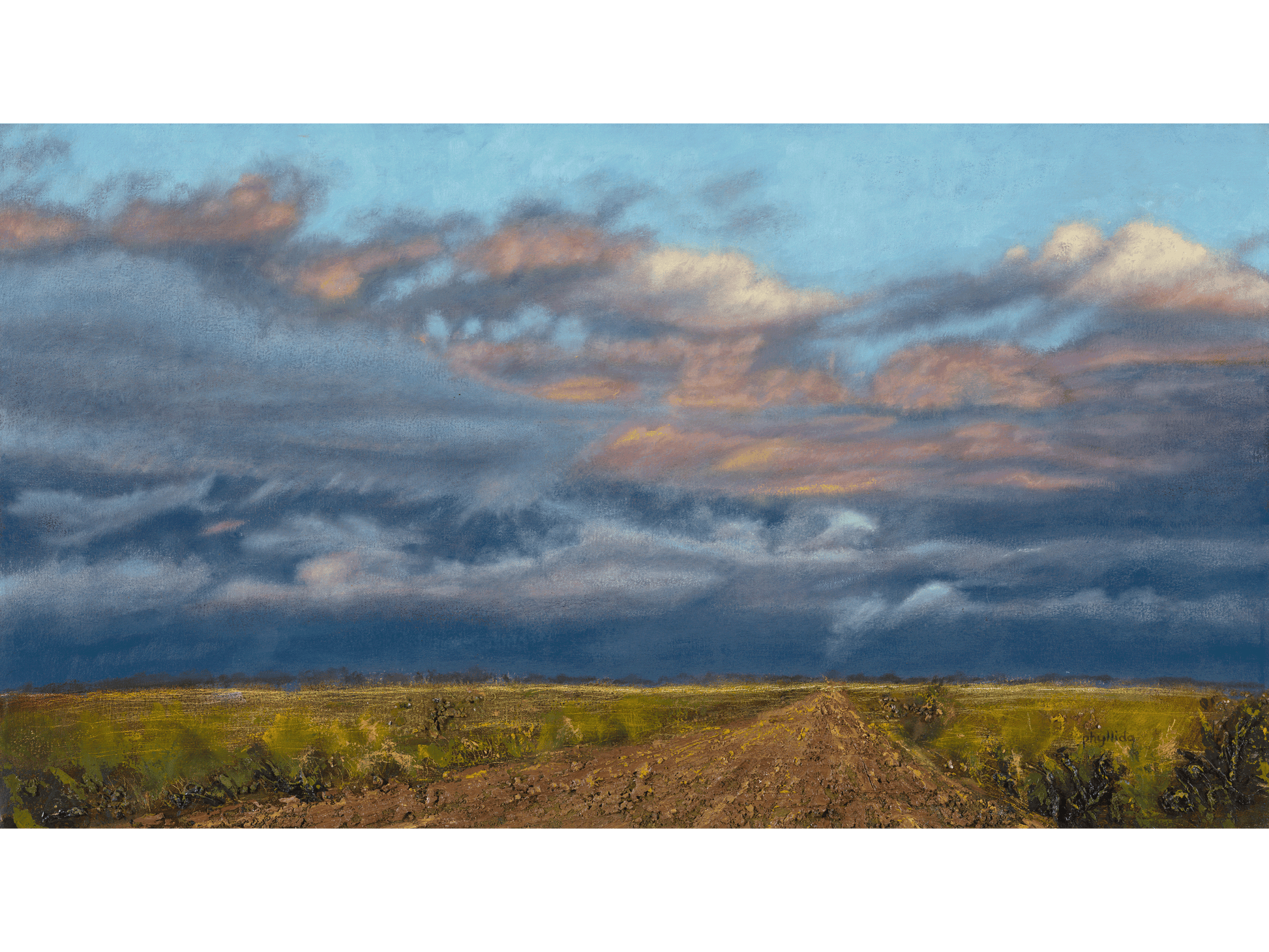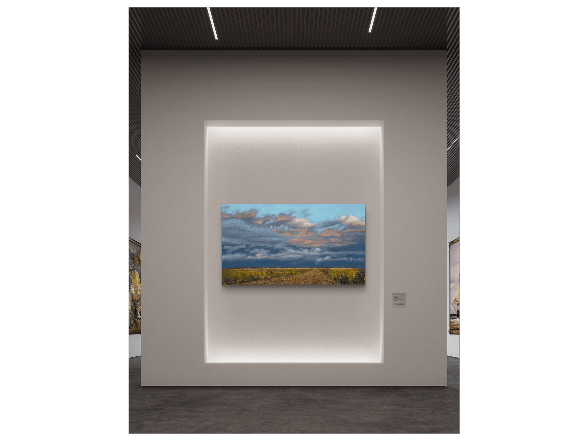 Gazing at this work, the viewer is struck by the vastness of the landscape unfolding before them. Pre-rain clouds drift overhead, casting a sense of renewal across the land. The use of colour is masterful—soft yet vivid—evoking the quiet anticipation of spotting wildlife in the distance.