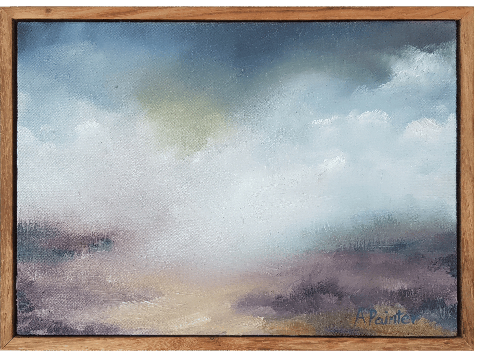 These two beautiful pieces by Anna Painter capture the soft stillness of early morning skies. Gentle clouds drift through muted violet tones, evoking the peaceful glow of dawn.