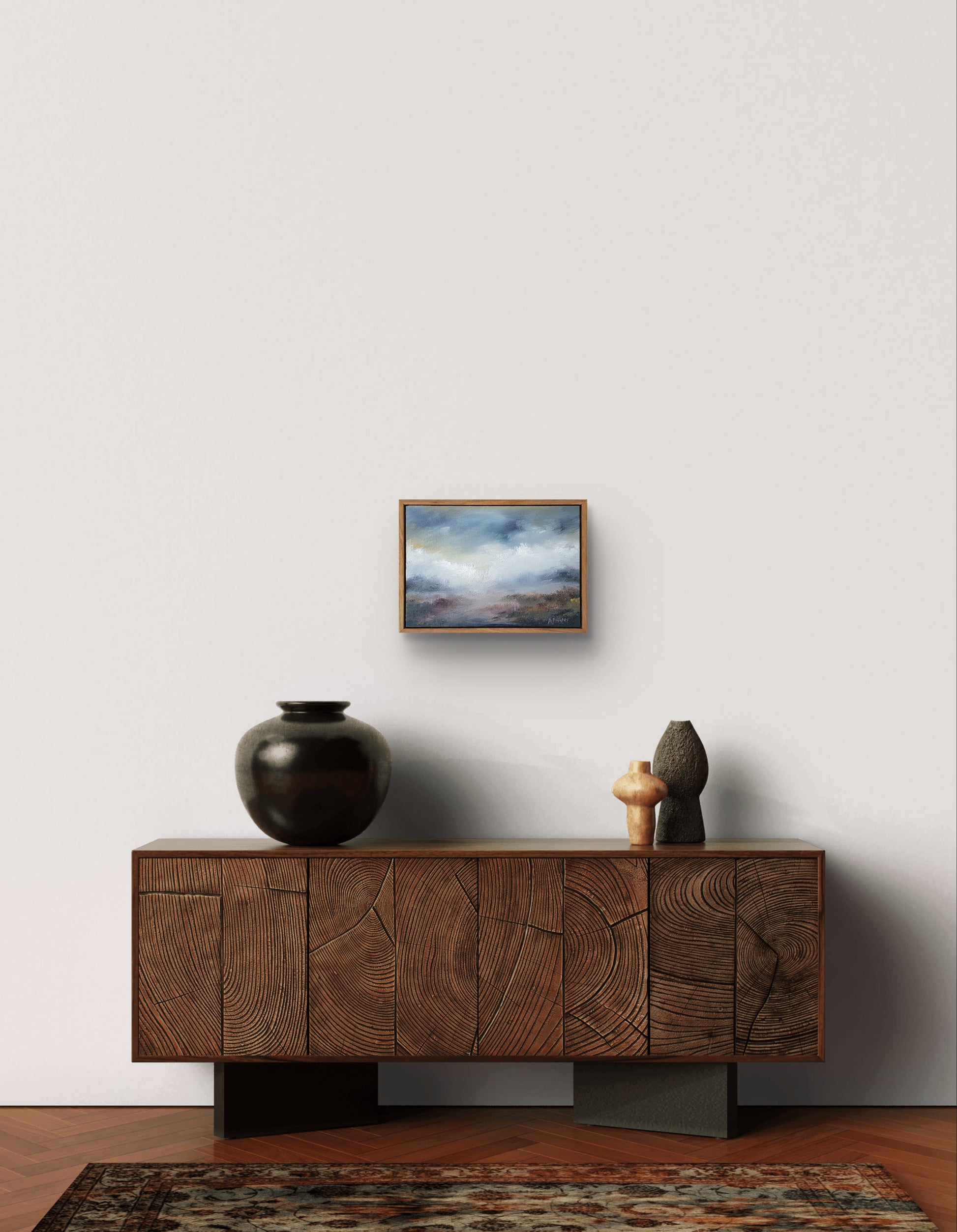 This piece pairs beautifully with ‘In the Skies – Van Dyke Hue’ by Anna Painter. Both works can be seen in the images provided.