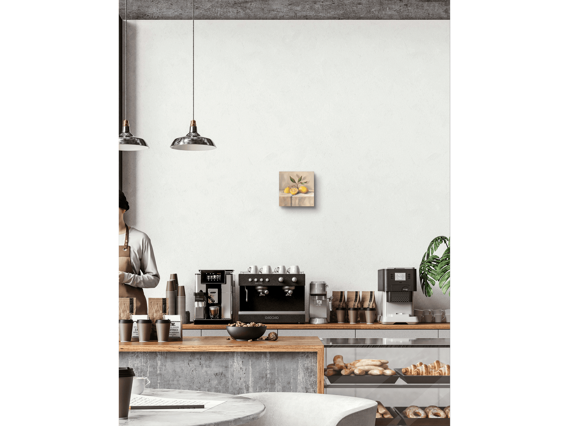 This elegant still life masterfully balances form and detail. The arrangement of whole and cut fruit alongside the sprig of leaves creates a classic triangular composition. The careful rendering of light reveals the fine texture of the rind and the starburst pattern within the bisected lemon, all grounded by the muted, neutral setting.