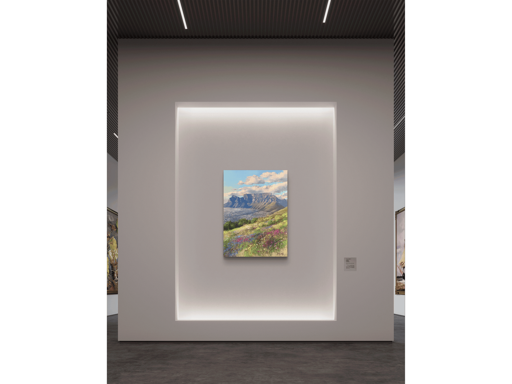 Admire the iconic panorama of the Mother City with this striking original oil painting, titled 'Spring flowers on Signal Hill' by renowned South African artist James Yates. This artwork captures the majestic sweep of Table Mountain viewed from the slopes of Signal Hill.