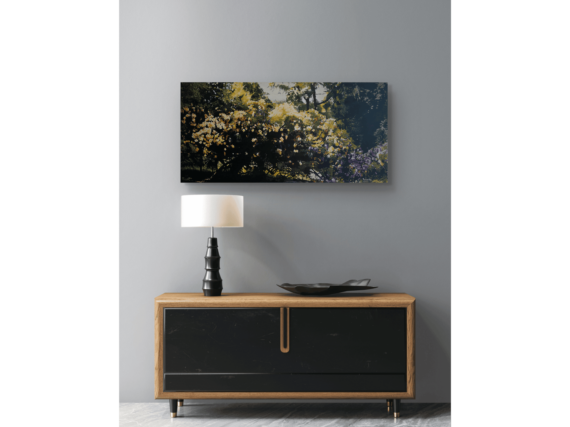 Mike’s love of colour finds joyful expression here. Inspired by his early eye for detail and form, the garden is painted as a celebration of renewal, with layered textures and vibrant hues conveying the energy and optimism of spring.